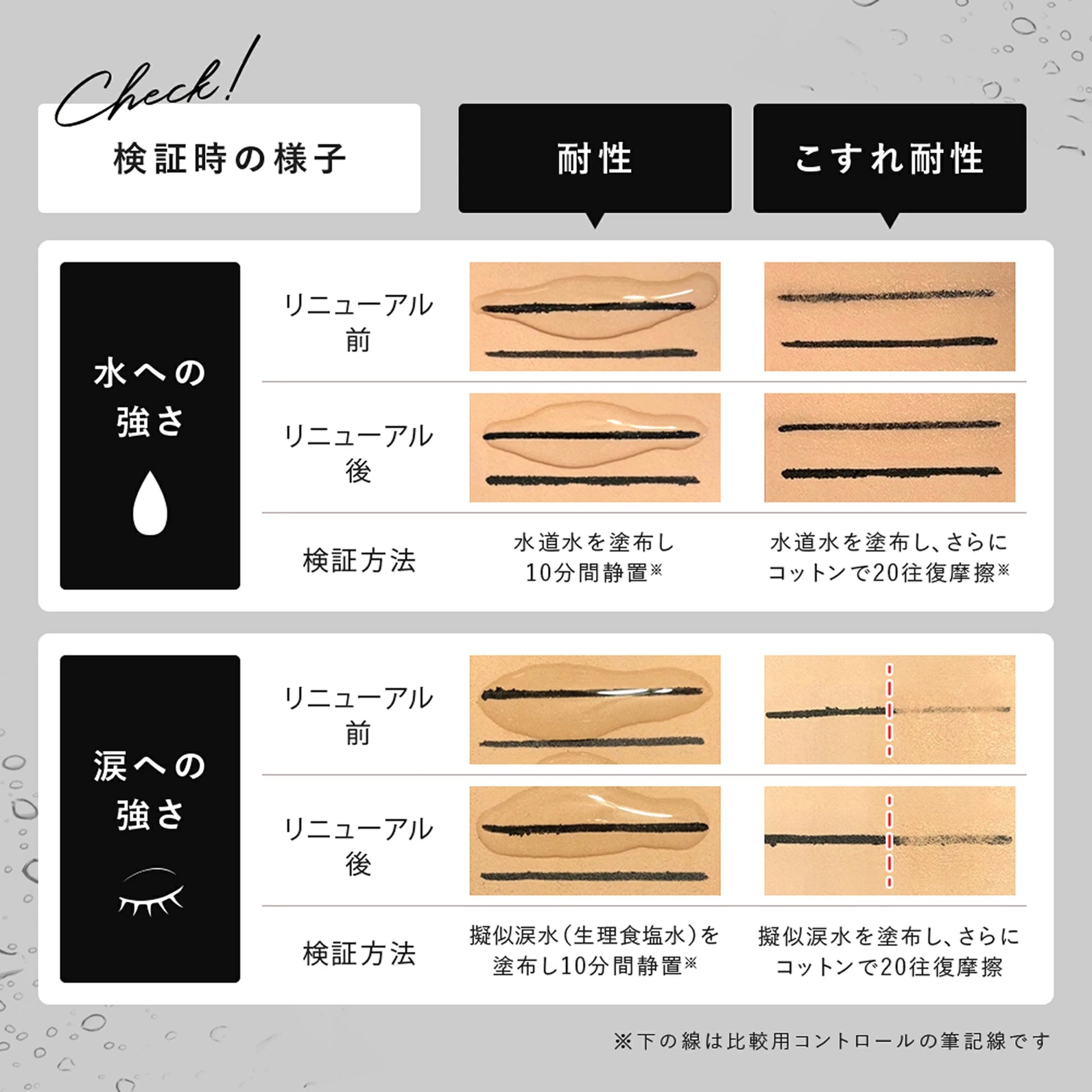 水、(スチレン/アクリレーツ)コポリマー、BG、アクリレーツコポリマー、1,2-ヘキサンジオール、センチフォリアバラ花水、センチフォリアバラ花エキス、サクシノイルアテロコラーゲン、ヒアルロン酸Na、アセロラ果実エキス、エタノール、カプリリルグリコール、エチルヘキシルグリセリン、リン酸2Na、ペンチレングリコール、水酸化K、リン酸K、メチルパラベン、デヒドロ酢酸Na、フェノキシエタノール、カーボンブラック